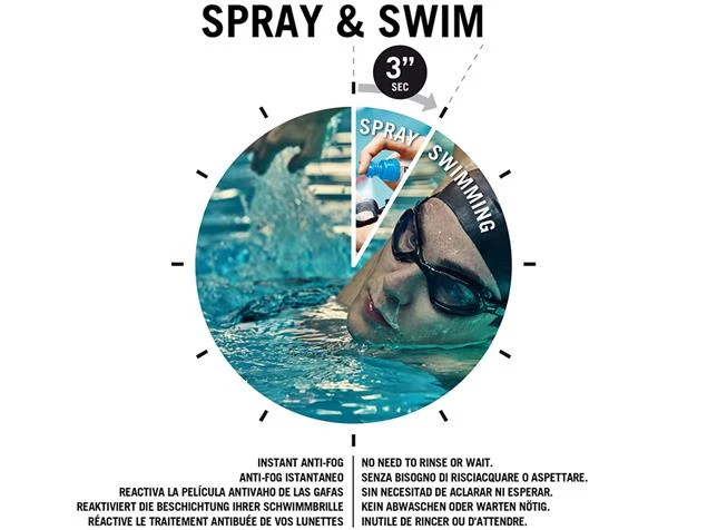 Reaktiviert die Beschichtung ihrer Schwimmbrille. Spray and Swim. Schneller,effektiver und praktischer als andere handelsübliche Antibeschlagsprays. Neue, revolutionäre Formel für außergewöhnlich klare Sicht. Aus einer Entfernung von etwa 20 cm auf die Gläser sprühen. Kein Abwaschen oder Warten nötig.