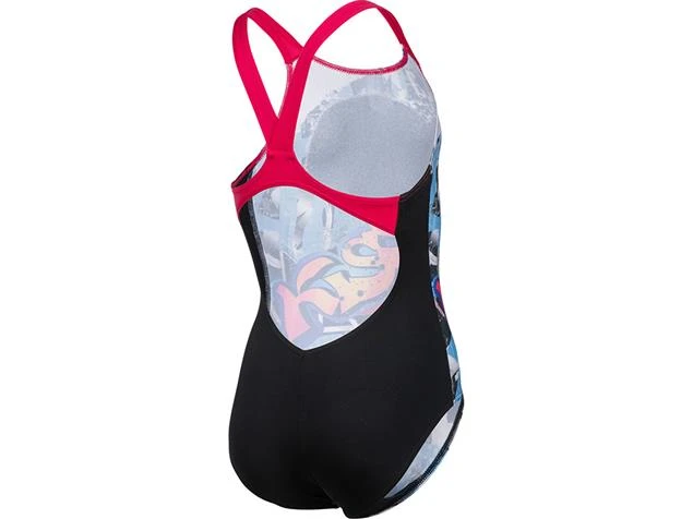 Arena Placement Mädchen Badeanzug New V Back – 128 black/freak rose