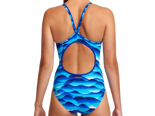 Der Funkita Badeanzug für Damen mit Diamond Back Rückenausschnitt im Storm Buoy Design. Mit diesem Badeanzug sind Sie der Hinkucker am Pool! Die schmalen Träger sind im Rücken über Kreuz gebunden für einen optimalen Kompfort des großen Rückenausschnitts mit moderat hohem Beinausschnitt. Hergestellt in C-Infinity Qualität, einem Farbintensiv, chlorbeständigem Polyestermaterial exklusiv von Funkita und Funky Trunks. ECO C-INFINITY bietet 100% Chlorbeständigkeit und außergewöhnliche Farben, gibt den Abfällen ein neues Leben und reduziert unsere Umweltbelastung.