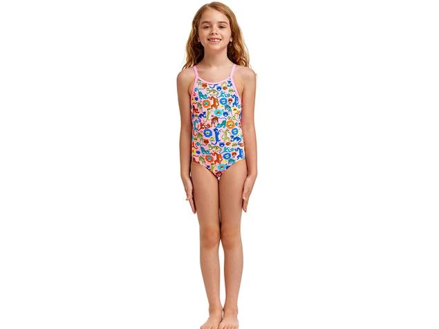 Der Funkita Toddler Badeanzug für Mädchen mit geschlossenem Rücken im Feline Fiesta Design. Die „Single Strap“ Träger und der Rückenschnitt im Racer Back Stil machen ihn perfekt für viele Schwimmausflüge in einem bequemen Badeanzug. Der Toddler Badeanzug hat vorne ein Inner Lining, wodurch der Tragekomfort nochmals erhöht wird.