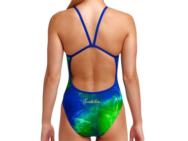Der Funkita Badeanzug für Mädchen und Jugendliche mit einfachem V-förmigen Träger und freiem Rücken im Fly Girl Fly Design. Schnitt und formgebende Nähte sorgen für den perfekten Sitz während des Schwimmens. Der Badeanzug hat nur vorne eine leichte Fütterung in Form einer zweiten Stoffbahn (Inner Lining) und das kleinem Funkita Logo auf der Rückseite. Hergestellt aus Funkitas exklusiven C-Infinity-Gewebe, einem 100% italienischen Polyester, das einen farbenfrohen Durchbruch in der chlorresistenten Gewebetechnologie darstellt! C-Infinity ist die erste Wahl für Schwimmer und hat eine außergewöhnliche Festigkeit und kann seine Haltbarkeit weit über andere Elastan-Bademodenstoffe hinaus beibehalten. Ideal für die häufige Nutzung im Schwimmbad für Freizeit- und Leistungsschwimmen.
