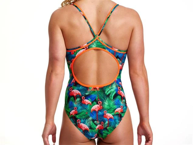 Der Funkita Ladies Badeanzug im klassischen Trainingsschnitt mit Diamond Back im Jungle Bungle Design. Die Träger und der dezente, runde Rückenausschnitt machen ihn perfekt für die täglichen Trainingsrunden in der Bahn. Der Badeanzug hat nur vorne eine leichte Fütterung (Inner Lining) in Form einer zweiten Stoffbahn. Dieses simple Design macht ihn sehr komfortabel. Hergestellt aus Funkitas exklusiven C-Infinity-Gewebe, einem 100% italienischen Polyester, das einen farbenfrohen Durchbruch in der chlorresistenten Gewebetechnologie darstellt! C-Infinity ist die erste Wahl für Schwimmer und hat eine außergewöhnliche Festigkeit und kann seine Haltbarkeit weit über andere Elastan-Bademodenstoffe hinaus beibehalten. Ideal für die häufige Nutzung im Schwimmbad für Freizeit- und Leistungsschwimmen.