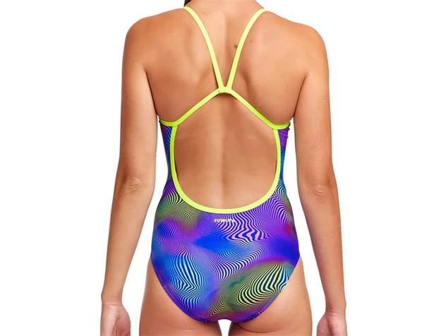 Der Funkita Badeanzug für Frauen mit einfachem V-förmigen Träger und freiem Rücken im Screen Time Design. Schnitt und formgebende Nähte sorgen für den perfekten Sitz während des Schwimmens. Der Badeanzug hat nur vorne eine leichte Fütterung in Form einer zweiten Stoffbahn (Inner Lining) und das kleinem Funkita Logo auf der Rückseite. Hergestellt aus Funkitas exklusiven C-Infinity-Gewebe, einem 100% italienischen Polyester, das einen farbenfrohen Durchbruch in der chlorresistenten Gewebetechnologie darstellt! C-Infinity ist die erste Wahl für Schwimmer und hat eine außergewöhnliche Festigkeit und kann seine Haltbarkeit weit über andere Elastan-Bademodenstoffe hinaus beibehalten. Ideal für die häufige Nutzung im Schwimmbad für Freizeit- und Leistungsschwimmen.