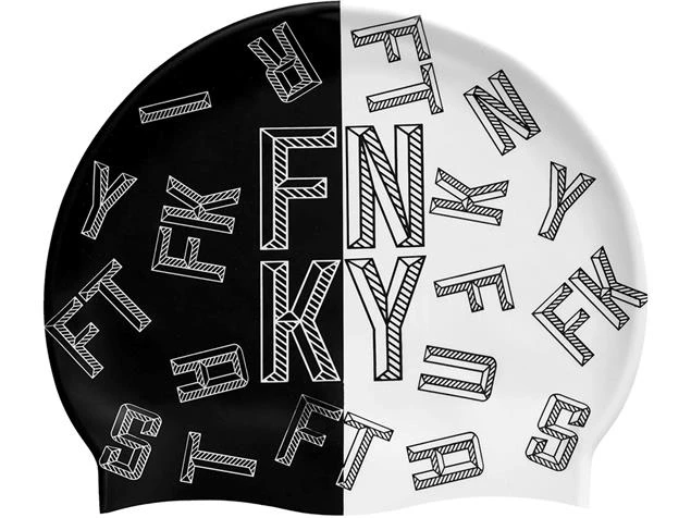 Die Badekappe im „FNKY“ Design mit stylischen Aufdruck von Funky Trunks besteht zu 100% aus Silikon.