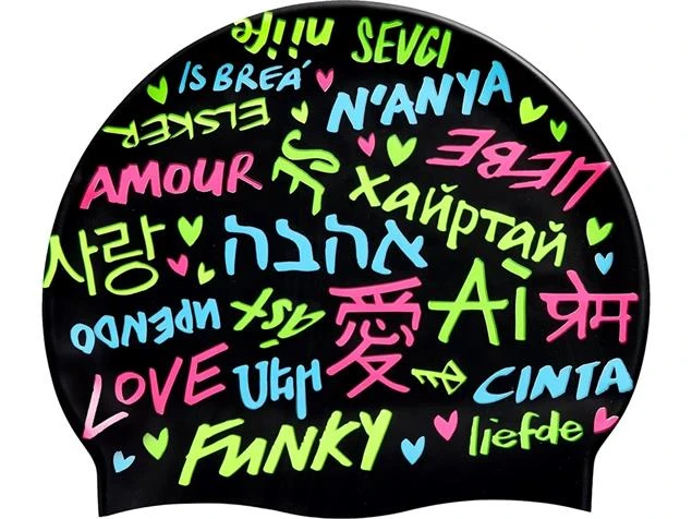 Die schwarze Badekappe im Love Funky Design mit stylischen Aufdruck von Funkita besteht zu 100% aus Silikon.