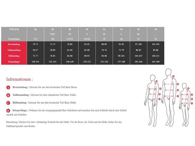 TYR Training-Schwimmhosen sind voll gefüttert, gewährleisten 4-Wege-Stretchtechnologie und bieten Sonnenschutz mit UPF 50+. Alle Durafast One®-Anzüge sind chlorbeständig und halten einer beeindruckenden Leistung von über 300 Stunden stand.